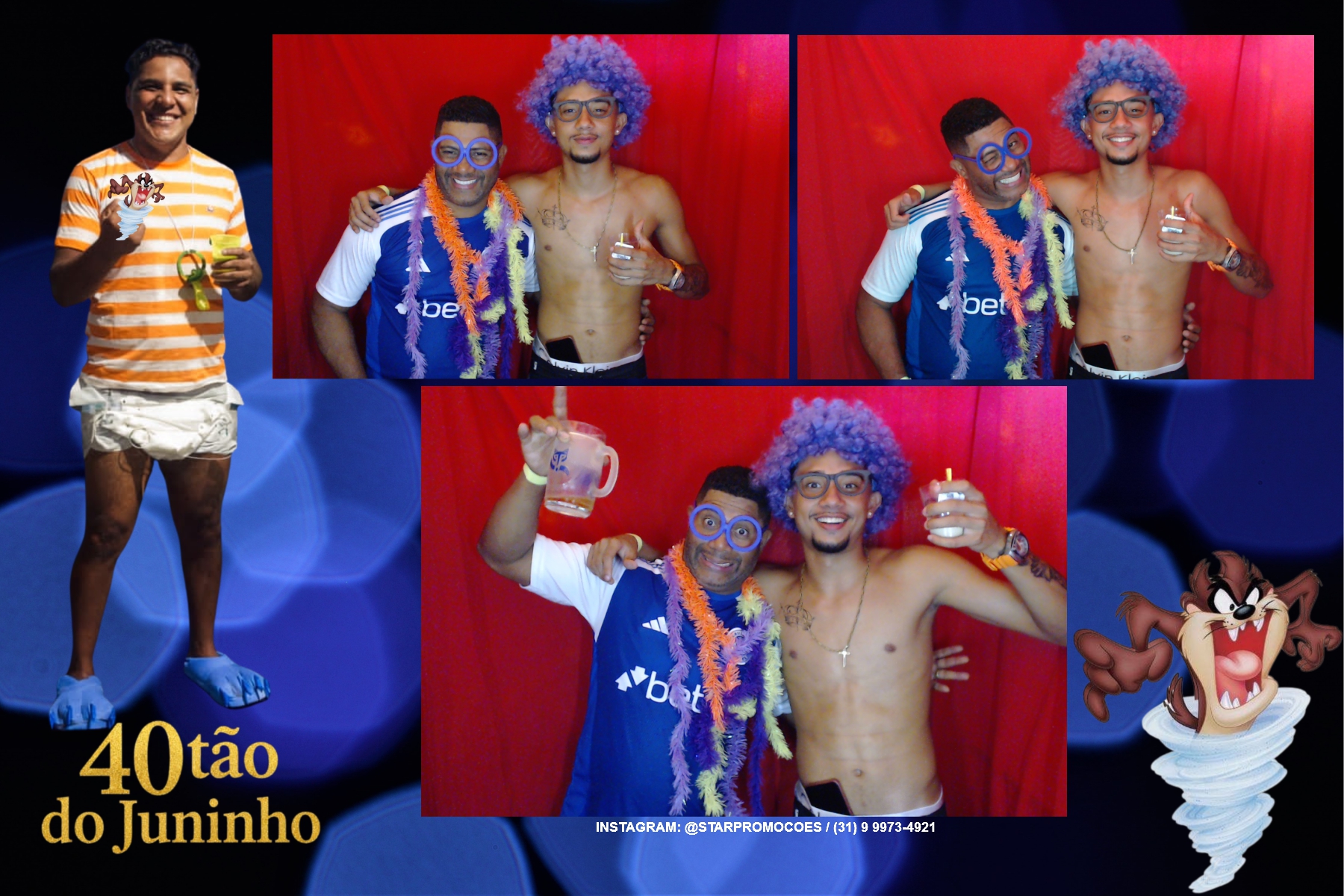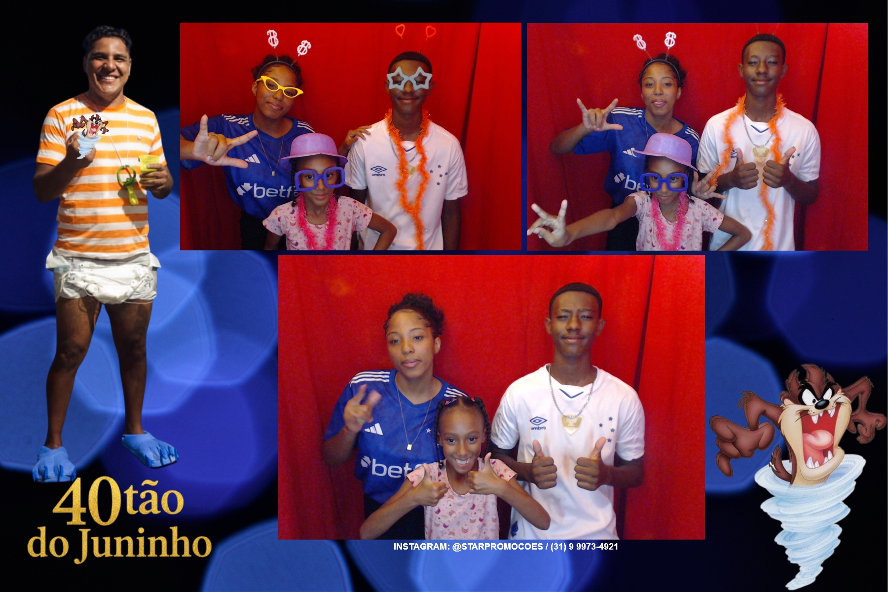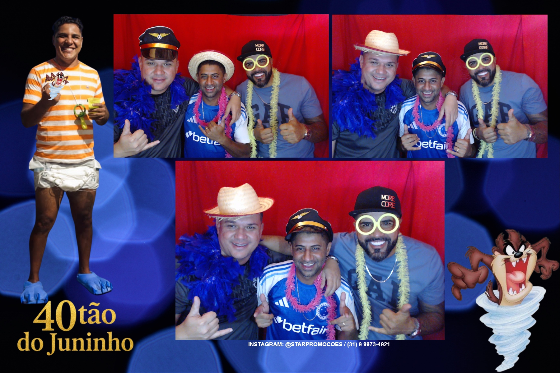 Cabine de fotos na comemoração 40Tão do Juninho. Chame nossa comitiva para seu evento. (31) 99973-4921 / 99244-8809